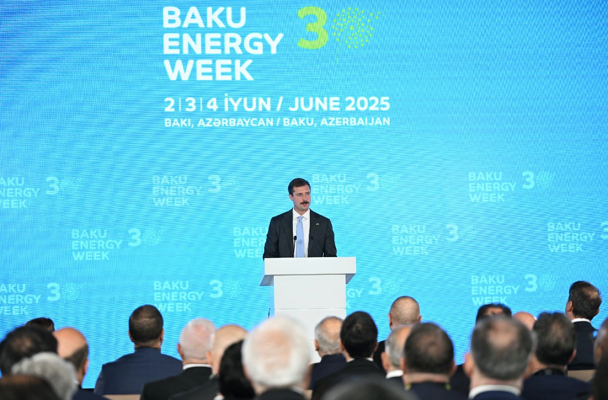 Bu gün sizinlə, həqiqətən də əlamətdar tədbirdə - 30-cu yubiley “Bakı Enerji Həftəsi”ndə böyük şərəf hissi ilə iştirak edirəm. ABŞ və Azərbaycan enerji sektorunda onilliklərə söykənən təcrübəyə, müştərək əməkdaşlığa malikdir. “Əsrin müqaviləsi”nin imzalanmasının ildönümünün keçirilməsi də ikitərəfli enerji münasibətlərini təcəssüm etdirir. “Əsrin müqaviləsi”ndən Cənub Qaz Dəhlizinə qədər Azərbaycan həqiqətən də enerji təhlükəsizliyinin regionda və ondan geniş coğrafiyada həlledici oyunçu olduğunu sübut etmişdir. Azərbaycanla ortaq maraqlarımızı əks etdirən və enerji təhlükəsizliyinin təmin olunmasında işbirliyinə sadiqliyimizi təsdiq edən mühüm bir mesajı – cənab Prezident Trampın məktubunu diqqətinizə çatdırıram.