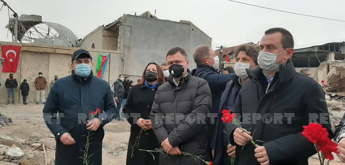 "Report"un Qərb Mərkəzinin məlumatına görə, xarici qonaqlar Ermənistan silahlı qüvvələri tərəfindən Gəncənin raket atəşinə tutulması nəticəsində dağılan ərazilərə gedərək erməni hərbi cinayətlərinin nəticələri ilə yerində tanış olublar.