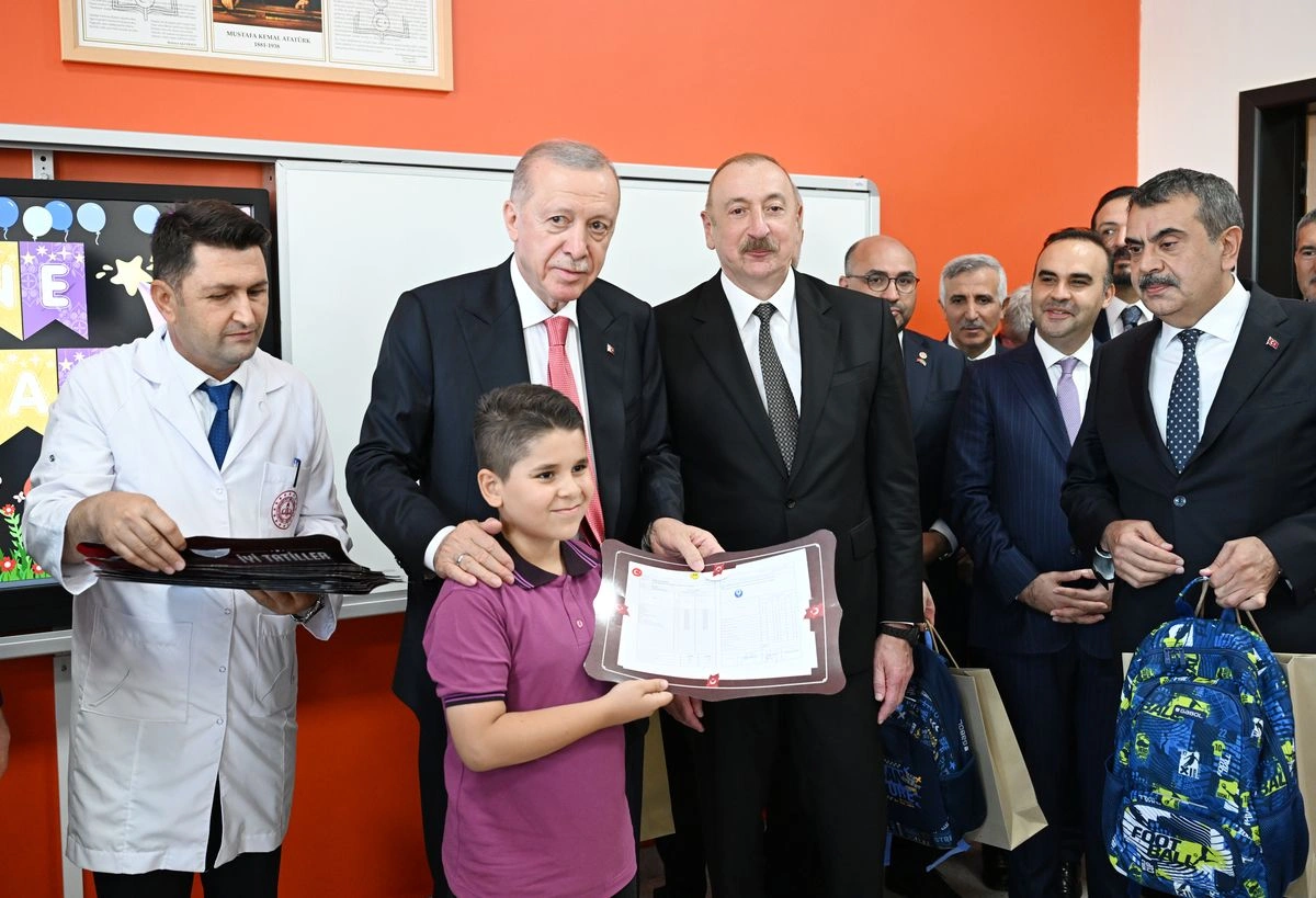 Prezident İlham Əliyev və Prezident Rəcəb Tayyib Ərdoğan məktəbin 4-cü sinfini bitirən şagirdlərə qiymət cədvəllərini təqdim etdilər. Dövlət başçıları tərəfindən şagirdlərə, həmçinin məktəbli çantaları hədiyyə olunub.