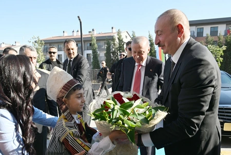 Azərbaycan və Türkiyənin dövlət başçılarını balacalar böyük sevinclə qarşıladılar.