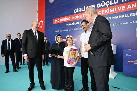İlham qardaşıma və heyətinə kahramanmaraşlılar adından təşəkkür edirəm. Burada, ilk növbədə, bunu vurğulamaq istəyirəm: Türkiyə ilə Azərbaycan arasındakı tale birliyinin ən konkret nümunələrindən biri açılışını etdiyimiz mənzillərdir. Bilirsiniz, 2023-cü il fevralın 6-da tariximizin ən böyük təbii fəlakətlərindən birini yaşadıq. Keçmişdən bu günə bir çox kədərli xatirələrimiz oldu. Ancaq həmin gün 11 əyalətimizdə gördüyümüz fəlakət və dağıntılar hamısından ayrı idi, 12 min 796-sı Maraşda olmaqla 53 min 735 canımızı torpağa tapşırdıq. Rəbbim bizə belə bir faciəni bir daha yaşatmasın. Fürsətdən istifadə edərək, zəlzələdə həyatını itirən bacı-qardaşlarımıza bir daha Allahdan rəhmət, digər bacı-qardaşlarıma səbir diləyirəm.