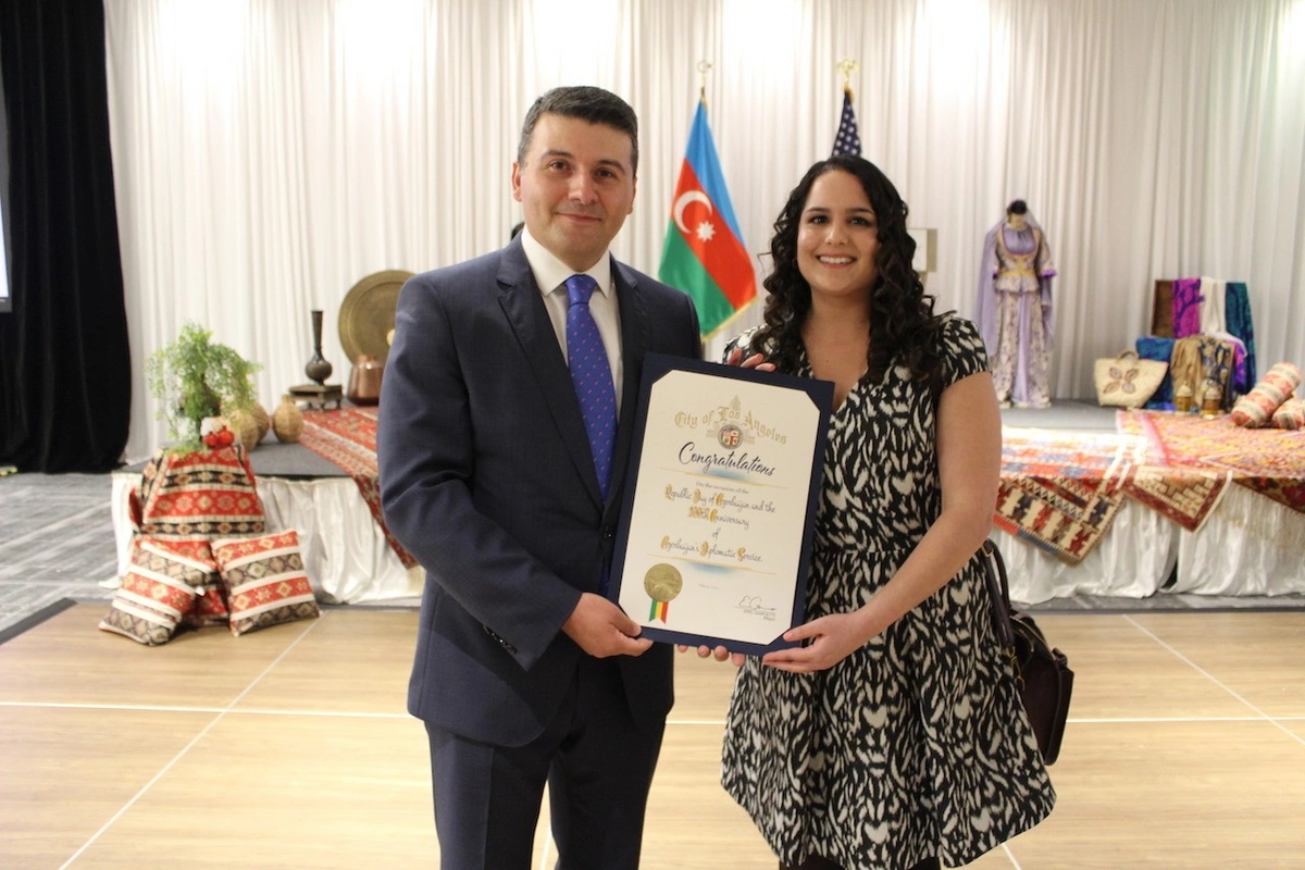 Azərbaycanın Los-Ancelesdəki baş konsulu, Los-Anceles Konsulluq Korpusunun duayeni Nəsimi Ağayev 101 il əvvəl tariximizin ilk respublikası olan Azərbaycan Demokratik Respublikasını (ADR) qurduğunu və bu respublikanın müsəlman dünyasında ilk dünyəvi dövlət, eləcə də qadınlara səsvermə hüququ verən ilk müsəlman ölkəsi kimi tarixə düşdüyünü deyib.