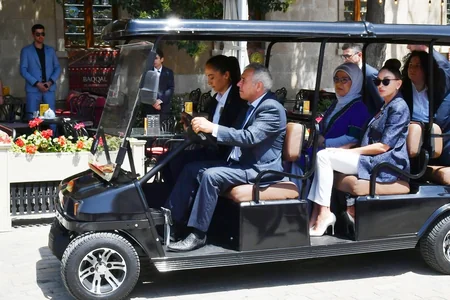 “Report” xəbər verir ki, qonaqlar gəzintiyə dünya əhəmiyyətli tarixi-memarlıq abidəsi olan Qız qalası ilə tanışlıqdan başlayıblar. Türkiyə Respublikasının birinci xanımına bu qədim abidənin tarixi barədə ətraflı məlumat verilib.