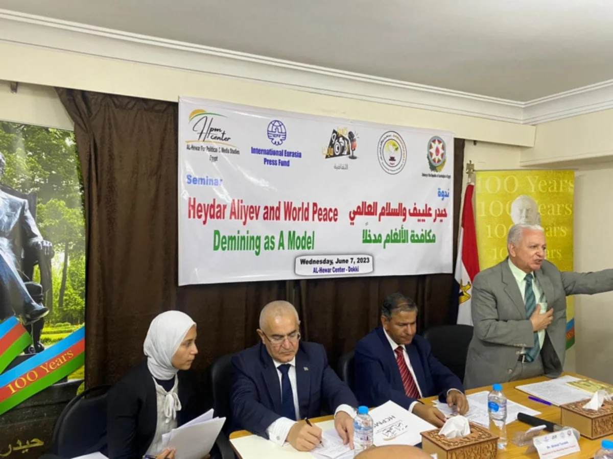 Misirin “Əl-Hivar” (Dialoq) Siyasi və Media Araşdırmaları Mərkəzində Azərbaycanın Ümummilli Lideri Heydər Əliyevin anadan olmasının 100 illiyi və Ümumdünya Ətraf mühitin mühafizəsi Günü çərçivəsində "Heydər Əliyev və dünya sülhü: Minalarla mübarizəyə giriş" adlı seminar keçirilib.