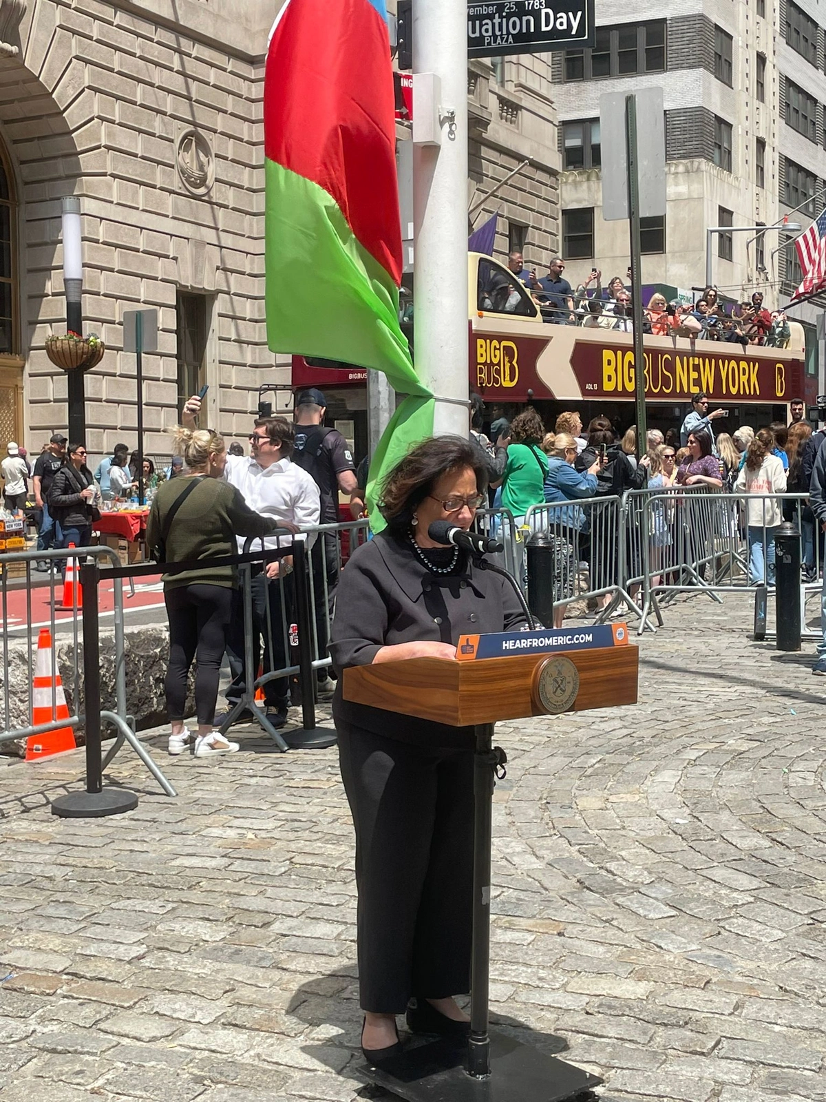 Tədbirdə çıxış edən Nyu-York şəhər meriyasının protokol xidmətinin rəhbəri Rəna Abbasova da, 28 May - Müstəqillik Günü münasibəti ilə dünya azərbaycanlılarını təbrik edib. O, dünyanın harasında yaşamağından asılı olmayaraq bütün azərbaycanlıların hər zaman birlikdə olmasının vacibliyinə diqqət çəkib.