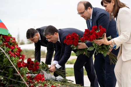 Nümayəndə heyəti abidənin önünə gül dəstələri düzərək Azərbaycanın ərazi bütövlüyü və suverenliyi uğrunda canından keçmiş qəhrəman Vətən övladlarının əziz xatirəsini ehtiramla yad edib.