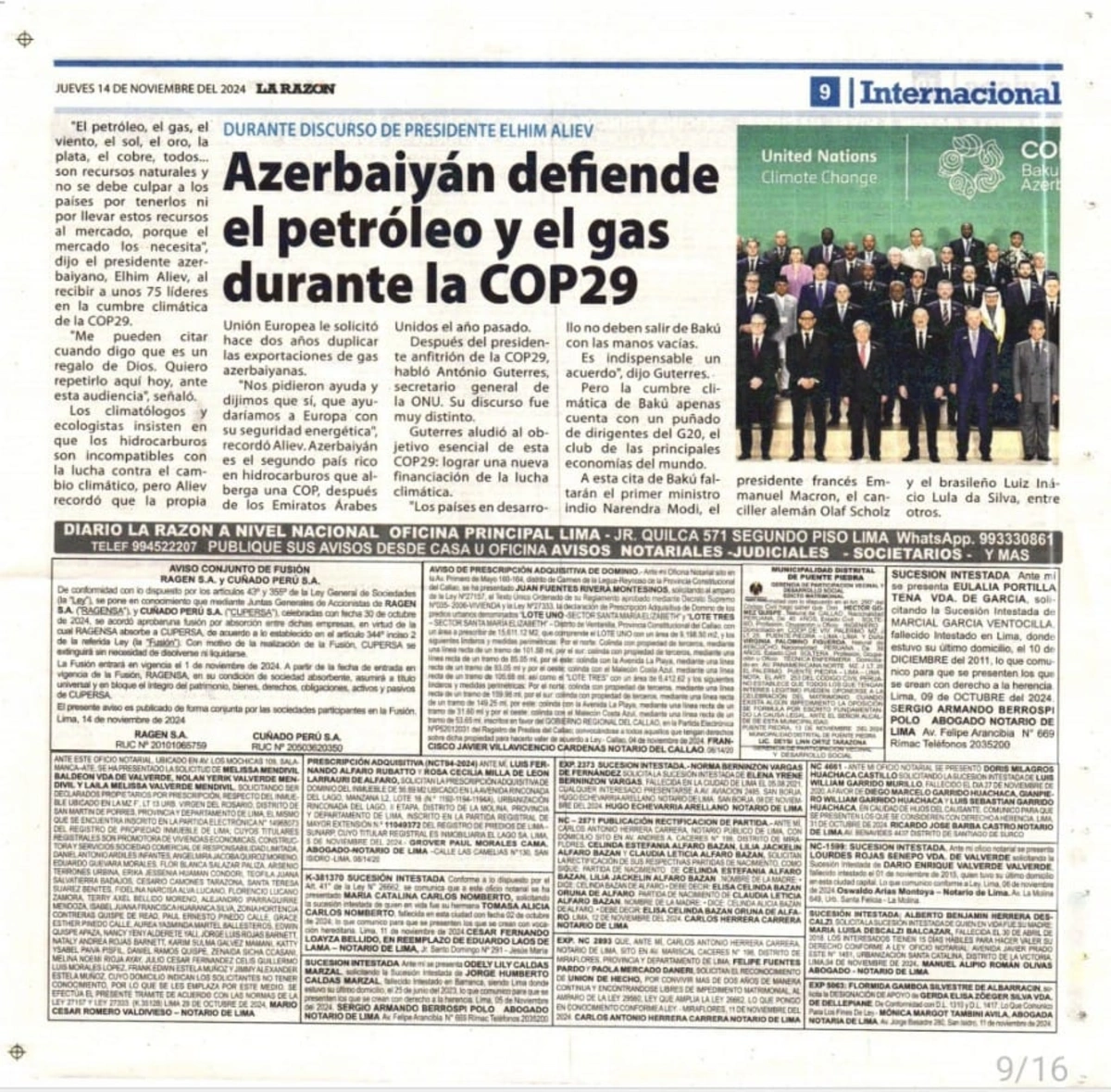 Peru mətbuatı Azərbaycanda keçirilən COP29-dan yazıb