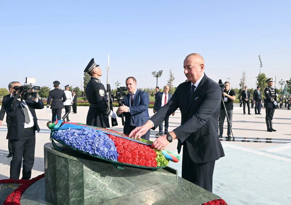 Azərbaycan Prezidenti İlham Əliyev, birinci xanım Mehriban Əliyeva və qızları Leyla Əliyeva Daşkənddə avqustun 22-də Müstəqillik abidəsini ziyarət ediblər.