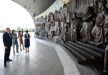 Sonra Prezident İlham Əliyev, birinci xanım Mehriban Əliyeva və qızları Leyla Əliyeva burada xatirə şəkli çəkdirdilər.