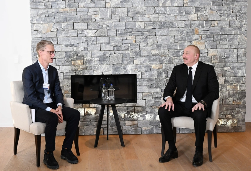 İlham Əliyev Davosda “Carlsberg Group” şirkətinin Baş icraçı direktoru Yakob Aarup-Andersen ilə görüşüb