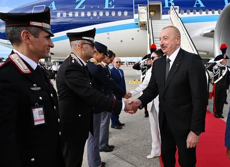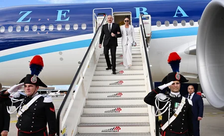 Milanın Malpensa hava limanında dövlətimizin başçısını və birinci xanımı İtaliyanın rəsmi şəxsləri qarşılayıblar.