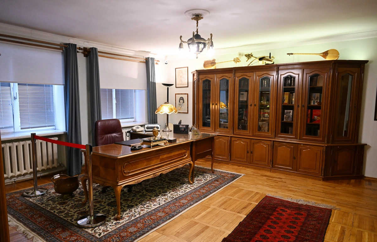 Çingiz Aytmatovun kiçik oğlu Eldar yazıçının hələ sağlığında evdə hökm sürmüş bütün ab-havanı və şəraiti ən xırda detala qədər qoruyub saxlamağa çalışıb. Ev muzeyində yazıçının şəxsi əşyaları, əlyazmaları və çoxsaylı mükafatları qorunub saxlanılır. İkinci mərtəbədə onun kabineti, yataq otağı və kitabxana yerləşir.