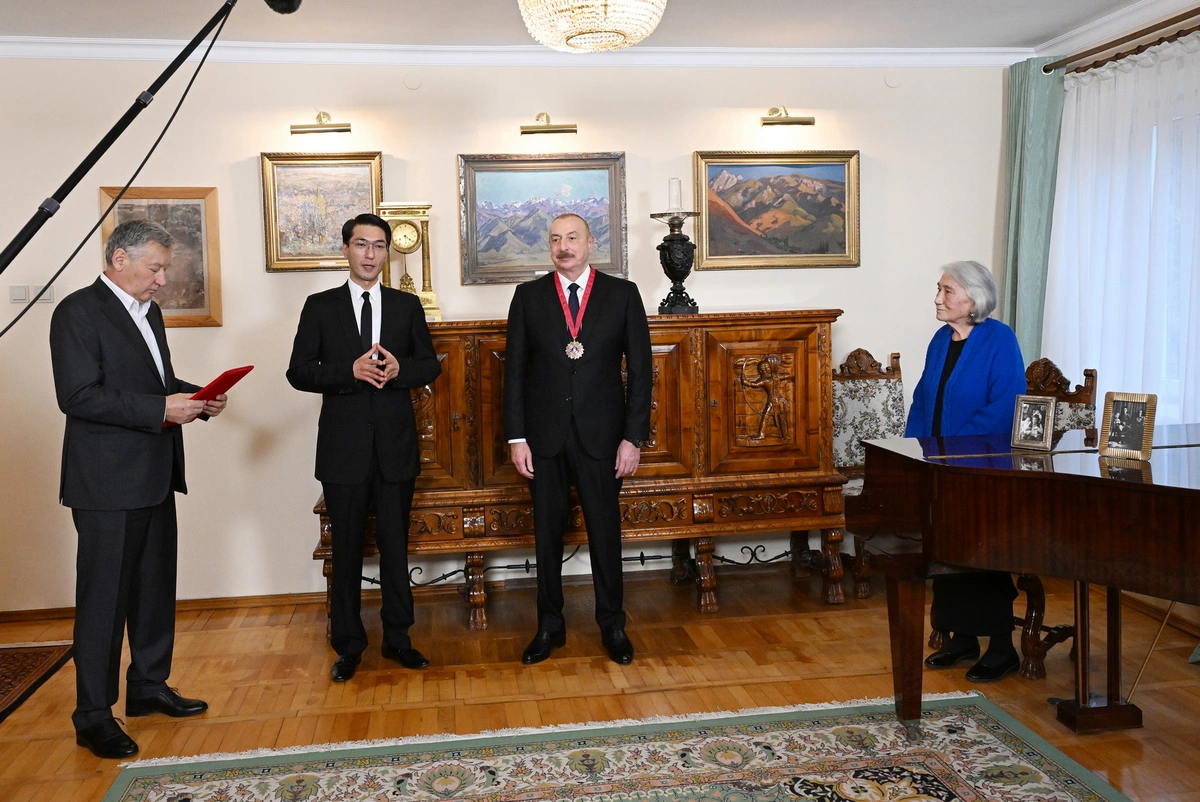 Sonra Prezident İlham Əliyevə “Çingiz Aytmatov” ordeninin təqdim edilməsi mərasimi oldu.