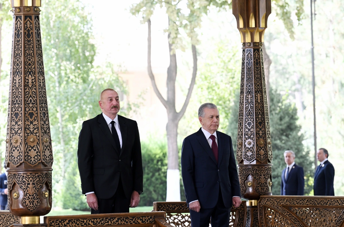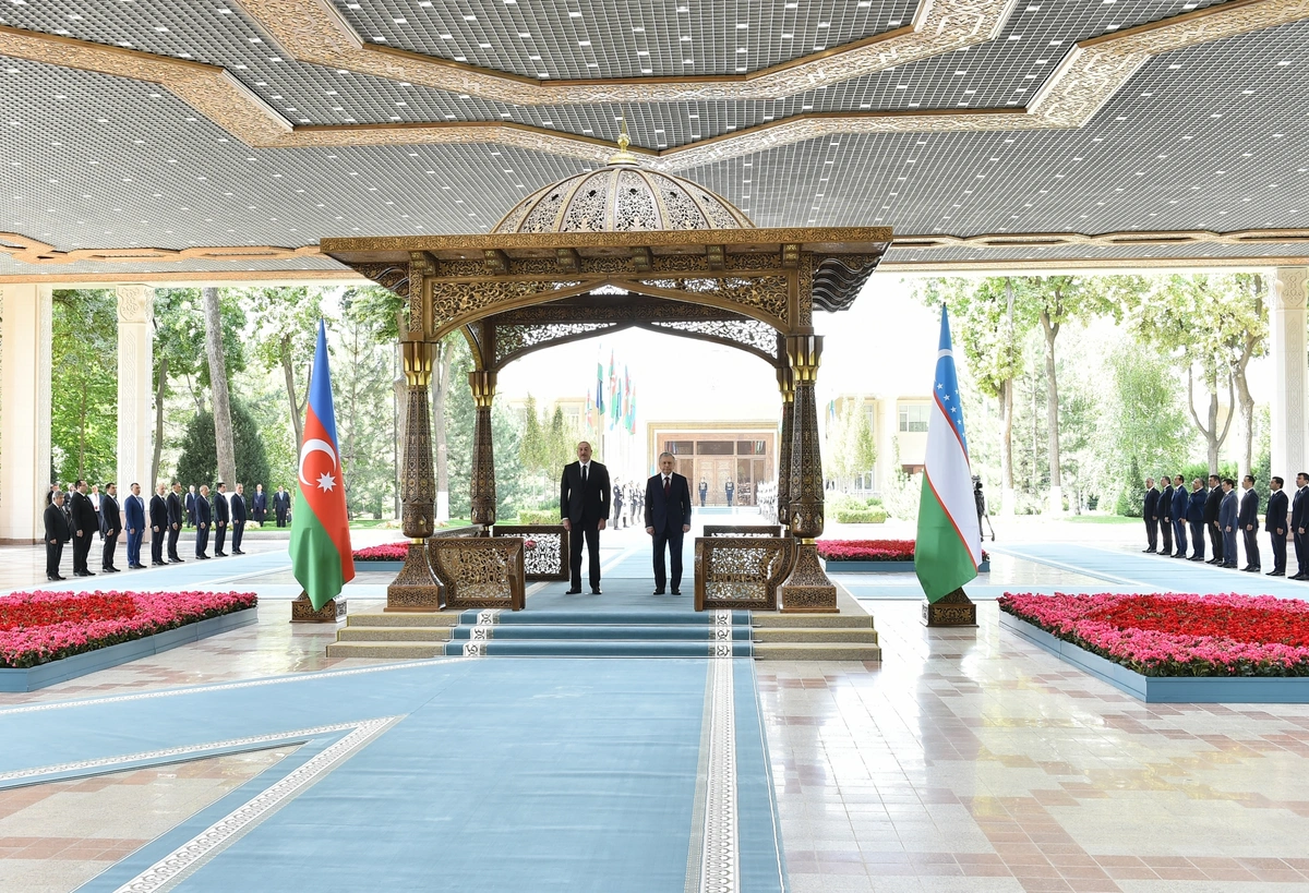 Azərbaycan Respublikasının Prezidenti İlham Əliyevin Daşkənddəki “Kuksaroy” dövlət iqamətgahında rəsmi qarşılanma mərasimi keçirilib.