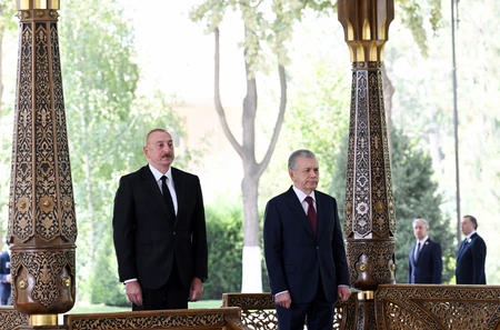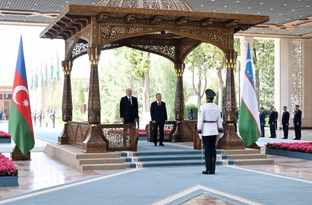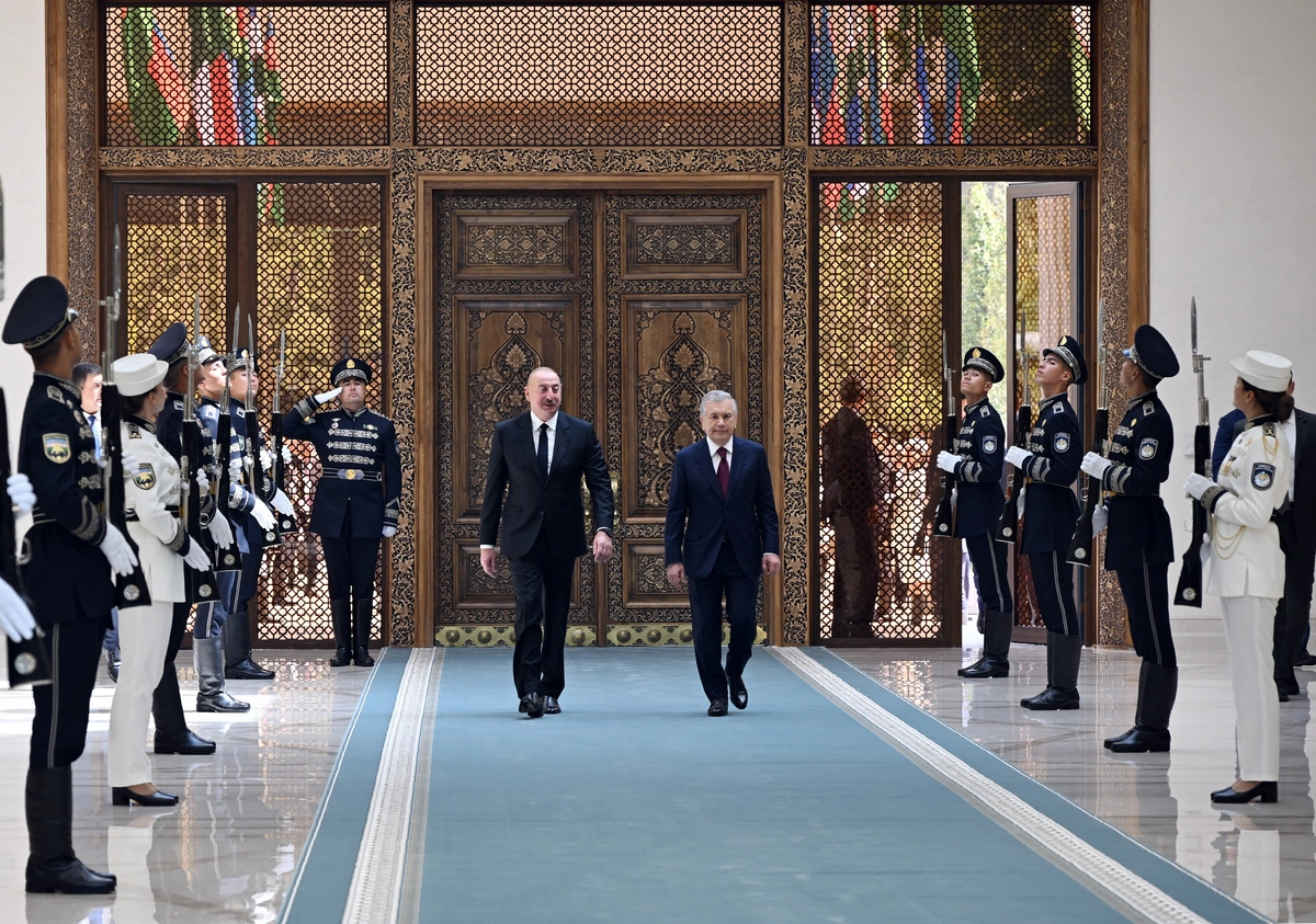 Azərbaycan Respublikasının Prezidenti İlham Əliyevin Daşkənddəki “Kuksaroy” dövlət iqamətgahında rəsmi qarşılanma mərasimi keçirilir.
