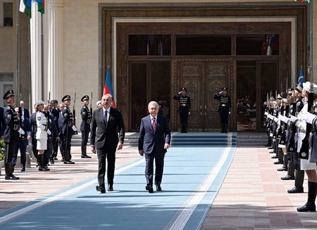 Prezidentlər fəxri qarovul dəstəsinin qarşısından keçiblər.