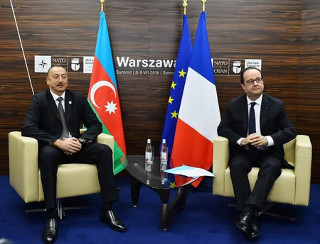 Bakı. 9 iyul. REPORT.AZ/ Azərbaycan Prezidenti İlham Əliyev Varşavada Fransa Respublikasının Prezidenti Fransua Olland ilə görüşüb.