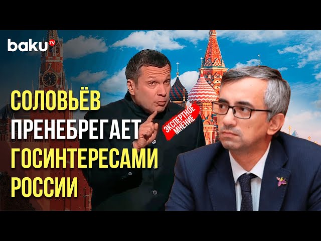 “Bu əlaqələrə görə Solovyov nəinki jurnalist peşəsi üçün tələb olunan obyektivlik və qərəzsizlik meyarlarını görməzdən gəlir, eləcə də Rusiyanın dövlət maraqlarına məhəl qoymur. Bu, artıq Rusiya Federasiyasının istintaq orqanlarının Solovyovun fəaliyyətini araşdırması və ona qarşı tədbirlər görməsi üçün əsasdır”, - F.Hüseynəliyev vurğulayıb.