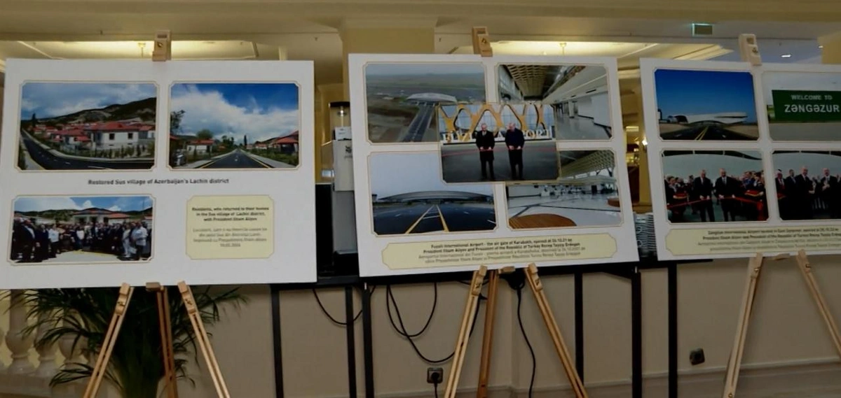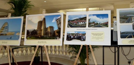 Tədbir çərçivəsində Azərbaycanın Nizami Gəncəvi, Şah İsmayıl Xətai, Məhəmməd Füzuli və s. kimi görkəmli dövlət və mədəniyyət xadimlərini, habelə işğaldan azad olunmuş ərazilərimizdə genişmiqyaslı bərpa və quruculuq işlərini, iki ölkənin inkişafını əks etdirən, eləcə də Rumıniya-Azərbaycan münasibətlərinə həsr edilmiş fotolardan ibarət sərgi təşkil edilib.