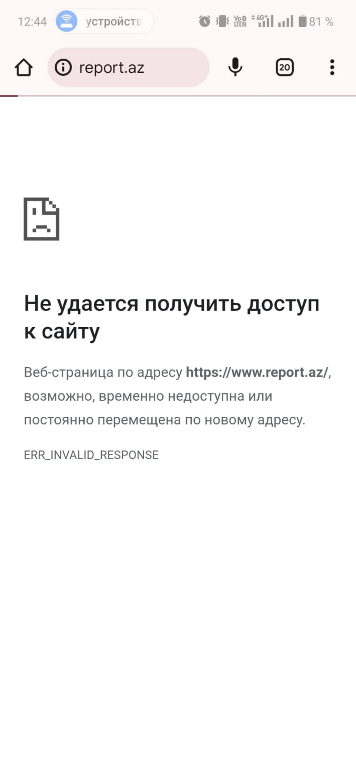 Beləliklə, Rusiya tərəfi www.report.az saytına girişi xəbərdarlıq etmədən məhdudlaşdırıb.