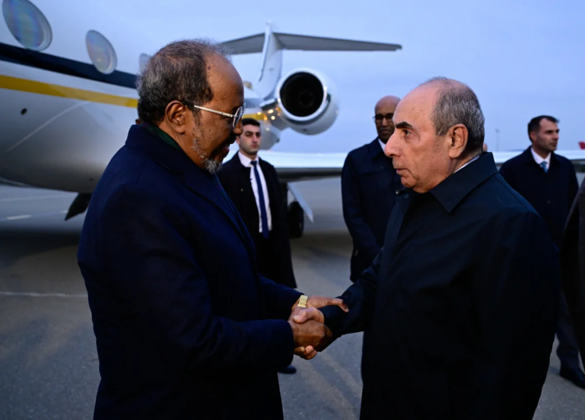 Somali Prezidentini hava limanında Azərbaycan Baş nazirinin birinci müavini Yaqub Eyyubov, xarici işlər nazirinin müavini Elnur Məmmədov və digər rəsmi şəxslər qarşılayıblar.