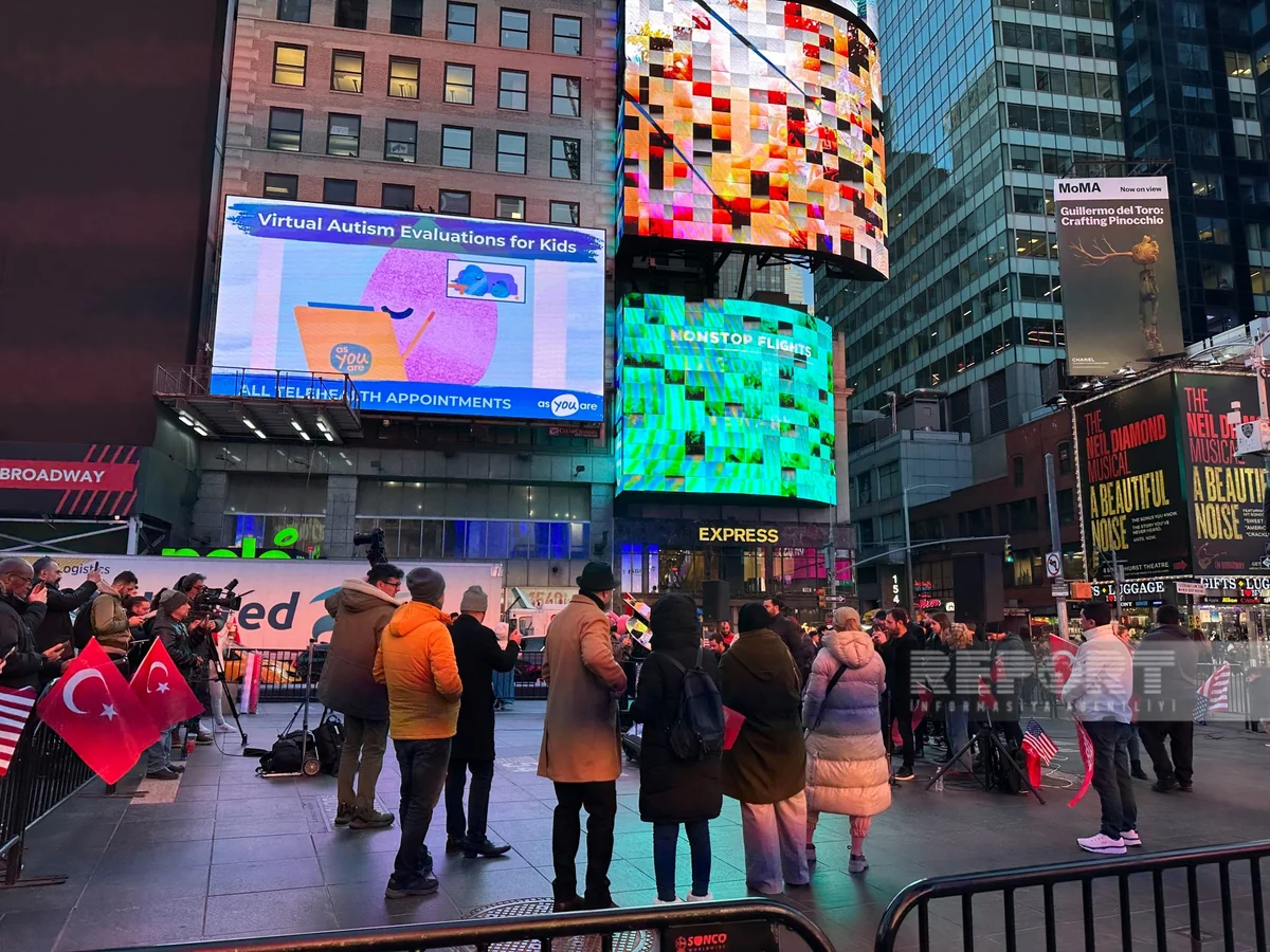 Nyu-Yorkun məşhur Tayms meydanında Türkiyədə və Suriyada baş verən güclü zəlzələ nəticəsində həlak olanların xatirəsi anılıb.
