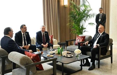 Sonra Özbəkistan Respublikasının Prezidenti Şavkat Mirziyoyev Zirvə görüşündə çıxış etdi.