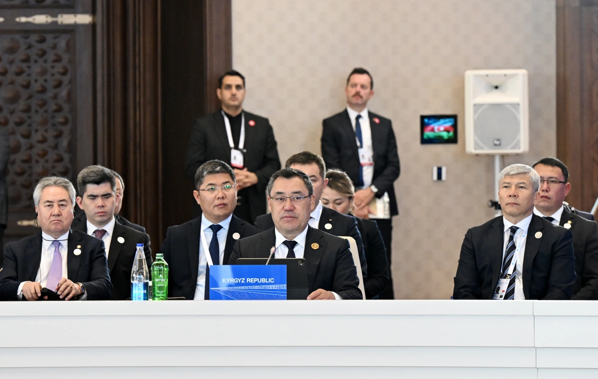 Qırğız Respublikasının Prezidenti Sadır Japarov bərpaolunan enerji mənbələri üzrə və rəqəmsal sahədə əməkdaşlığın, nəqliyyat-logistika əlaqələrinin inkişaf etdirilməsinin vacibliyini vurğuladı və iqlim dəyişikliklərinin iqtisadiyyatın şaxələnməsinə təsirindən danışdı. Prezident İqtisadi Əməkdaşlıq Təşkilatının Zirvə görüşünün Xankəndidə keçirilməsinin əhəmiyyətinə toxunaraq bildirdi: