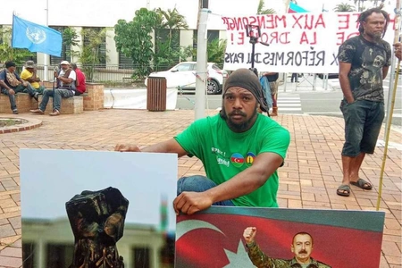 Yeni Kaledoniyada aksiyada Azərbaycan Prezidentinin və "Dəmir Yumruğ"un plakatları qaldırılıb - VİDEO